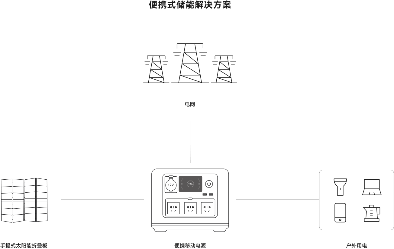 儲(chǔ)能業(yè)務(wù)解決方案適用于家庭應(yīng)急、戶外露營(yíng)、辦公、戶外拍攝、夜市經(jīng)濟(jì)、工地作業(yè)等戶內(nèi)外用電場(chǎng)景,并確保選擇的產(chǎn)品符合安全標(biāo)準(zhǔn)和性能要求,專業(yè)的產(chǎn)品和服務(wù)保證系統(tǒng)有效運(yùn)行。
